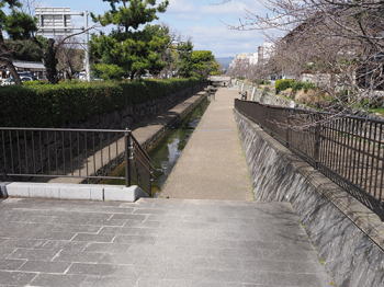 | 二条城向かいの『堀川』の河川敷 散歩できます 『川』デス 両川岸に桜が咲きます |
